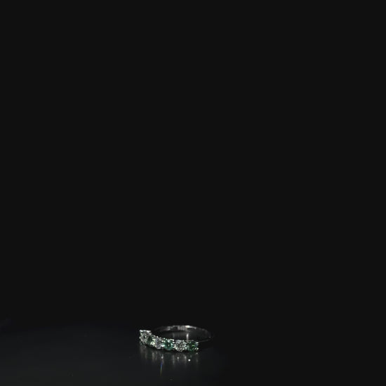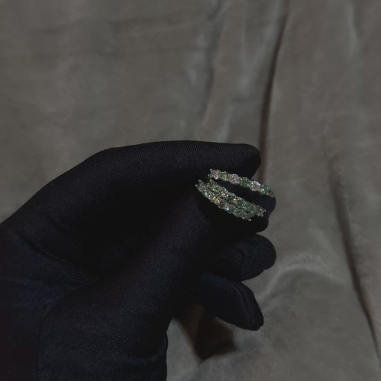 De ring is uitgevoerd in hoogwaardig 925 sterling zilver en bezet met 7 ronde Moissanite-edelstenen van 3 mm elk. Met een totaal karaatgewicht van 0,7CT.