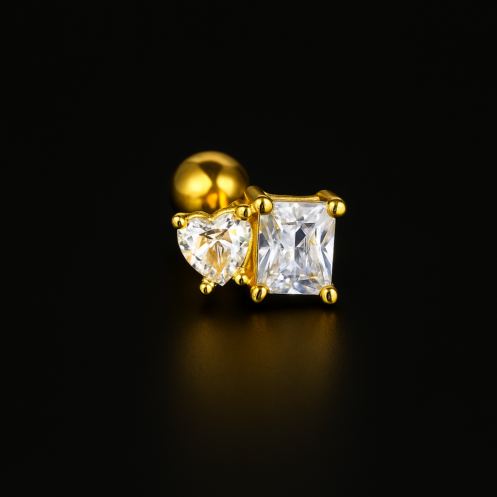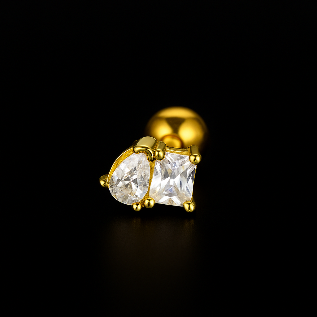 Set van 6 stuks kraakbeen/tragus/helix/daith oorbellen met stervormige cubic zirconia steentjes. Gemaakt van duurzaam roestvrij staal gecombineerd met koper en cubic zirconia voor een glanzende en huidvriendelijke afwerking. Elke oorbel is voorzien van een screw-back sluiting voor een veilige en comfortabele pasvorm, ideaal voor het stapelen van meerdere piercings. Deze set bevat zowel zilveren als gouden piercings, zodat je gemakkelijk kunt afwisselen en combineren met elke look.