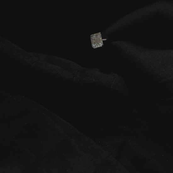 Deze elegante ring is gemaakt van 925 sterling zilver en schittert met een prachtige 8x10 mm (4 karaat) smaragdgeslepen moissaniet van D-kleur en VVS1-zuiverheid. De steen heeft een uitstekende slijpvorm, wat zorgt voor een indrukwekkende schittering die nauwelijks te onderscheiden is van een diamant. Geleverd met GRA-certificaat voor gegarandeerde kwaliteit.