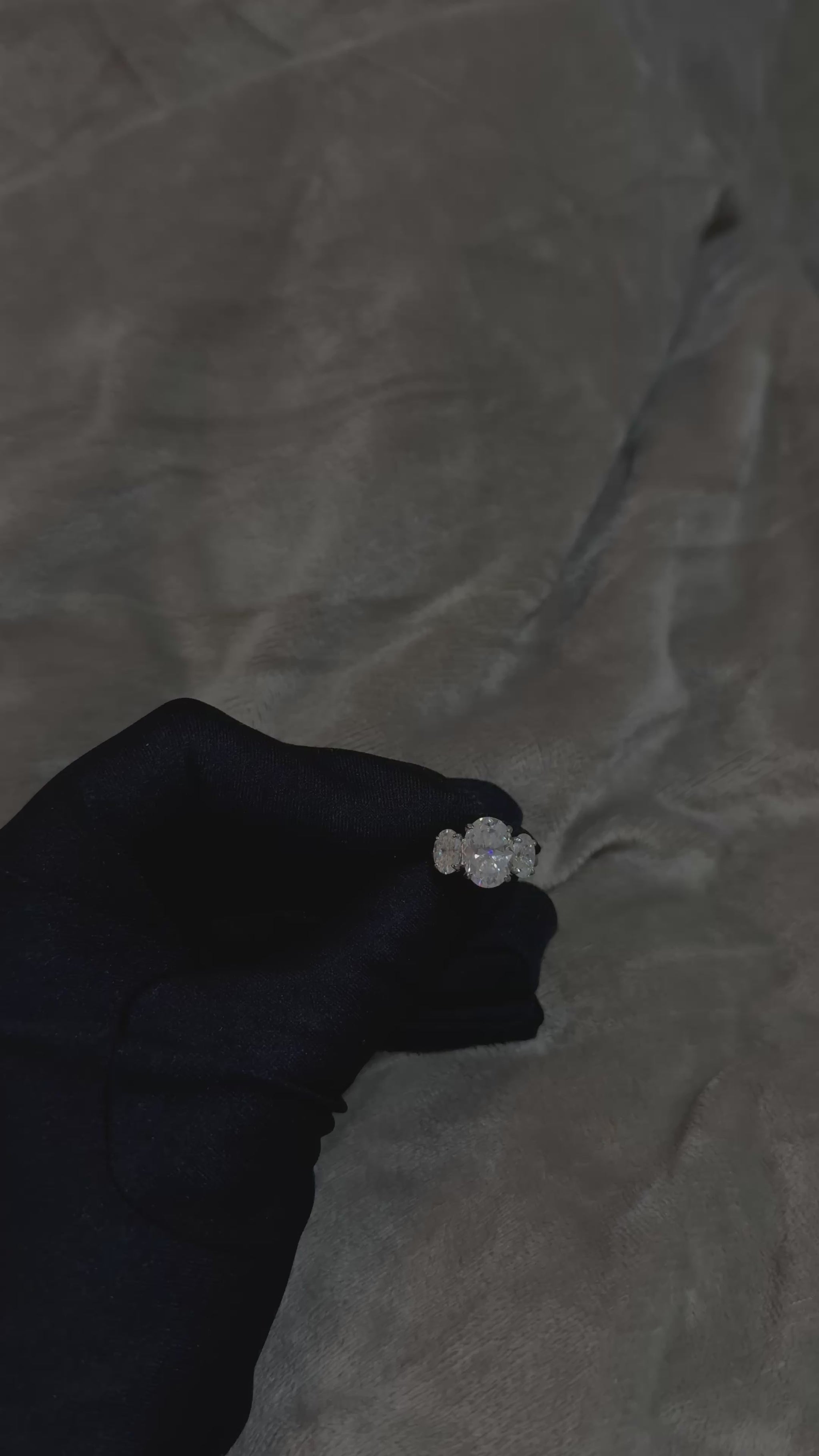 Met een totaal karaatgewicht van 6cttw (4+1+1 karaat) of een subtielere 3cttw (2+0.5+0.5 karaat), De D-kleur, VVS1-zuiverheid en Excellent cut van de moissanite-stenen garanderen een briljante fonkeling die nauwelijks te onderscheiden is van diamant.